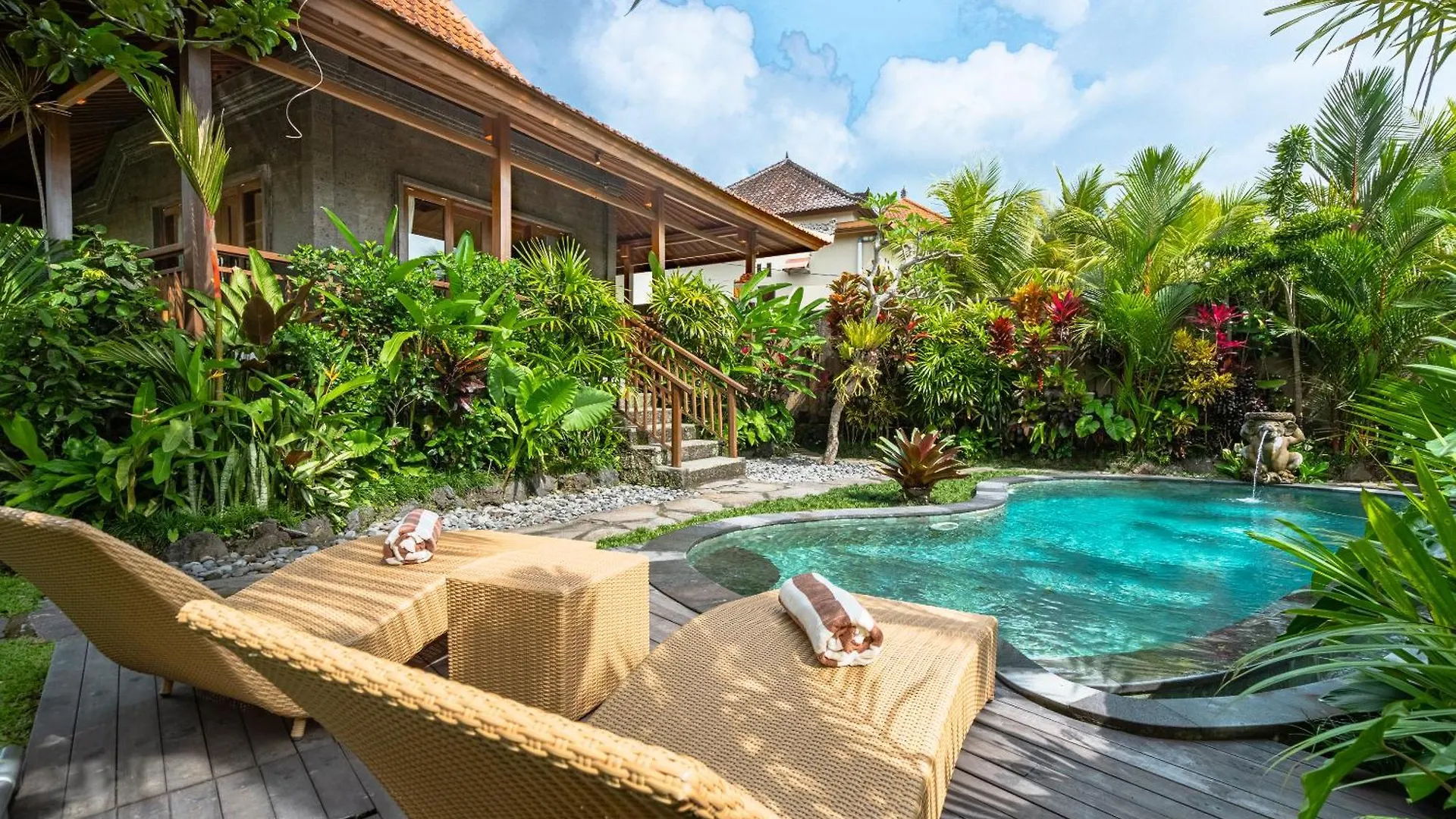 Kak Oman By Madhava Villas beschikt over een ingerichte kitchenette, evenals een eethoek buiten voor self-catering. Gasten kunnen ook gebruikmaken van een koffie/theezetapparaat, een koelkast en een broodrooster om hun eigen maaltijd te bereiden. De accommodatie ligt op 2 km van AA Juicery & Cafe, waar Aziatische gerechten worden geserveerd. De dichtstbijzijnde bushalte is Desa Visesa Ubud - Line 5, binnen een paar straten van de 1-badkamer villa. De gesitueerde in Ubud Kak Oman By Madhava Villas heeft een terras om op te ontspannen na een drukke dag, samen met een zwembad.
